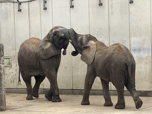 とべ動物園では、これまでにアフリカゾウが3頭誕生し、現在も元気に暮らしています。今回はその中でも最初に生まれた長女の媛(ひめ)について紹介します。媛は2006年11月9日生まれの19歳で、体の大きさは母親のリカと同じくらいまで成長しました。からだが大きくなったと言えども態度は大きくなく、むしろ控えめで、エサの時間には媛が確保していたエサを妹の砥愛(とあ)が横取りしてわがもの顔で頬張っていたり、そうかと思えば姉妹で仲良くじゃれあっていたり、姉である媛の優しさがうかがえる場面がたくさんあります。媛は私たち人間のことも好きなようで、よくお客さんの近くへ行って鼻を上げてアピールしていることもあります。見かけた際にはぜひ可愛く写真を撮ってあげてください。