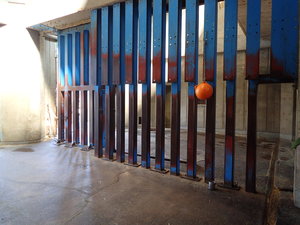先日、ゾウファンの方より媛と砥愛(とあ)に漁業で使われるフロートブイをプレゼントしていただきました。ブイは強度があるため、動物の遊具として用いられることが多いんです。夜間、ゾウたちが遊びながら時間をかけて採食できるように、このブイをフィーダーとして使用することにしました!