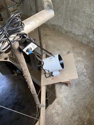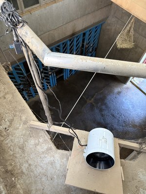 寝室のヒーターの試運転を行い、異常がないか点検したり、天窓を閉めたりと、やらなければいけないことはたくさんあります。様々な準備の一つとして、今回は媛の寝室の天井に空気を循環させるためのファンを設置しました。体の大きいゾウの寝室は天井が高いため、暖房をつけても暖気が上部に溜まってしまい、肝心のゾウがいる場所があまり暖かくなりません。そのため、天井にファンで暖気を循環することで、寝室全体の温度を上げることができます。またしても大変な高所作業でしたが、無事に設置完了。今年の冬は、より暖かい部屋で過ごしてもらえそうです。