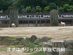 以前当HPでもご紹介しましたが、6月に東京の多摩動物公園よりシロオリックスのオスが新規搬入されました。一日でも早いパドックでの展示を目指していましたが、同じシロオリックス同士でのトラブルにより計画が大幅に遅れてしまいました。オリックスの組み合わせを変え同居訓練を続けたところ、何とかオリックス単独でのパドック展示ができるようになりました。それからダチョウ→シマウマ(大人しい組)→シマウマ(やんちゃ組)→キリン、と同居させる種、個体を徐々に増やしていき9月上旬なんとかエランド以外の種類との同居にこぎつけました。エランドとの同居については鋭い角を持つ動物、またオス同士ということもあり今しばらく様子を見て、慎重に行う予定です。サバンナ観測センターの動物たちが常にパドックで観察できるようになればまたこのHP上で報告したいと思います。