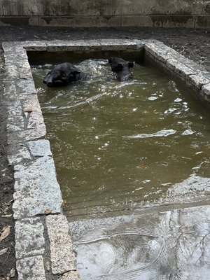 今年の冬は暖冬なのか厳冬なのか、寒暖差の大きい日が何度かありました。昨年2月の小雪交じりの寒さの中、ナナハは妊娠中にもかかわらずプールにも何度も入っていました。ヒメナも遺伝なのか、気温3℃の極寒の中でもウンチをするためにプールへ入ります。一度ではなく、何度となく入ります。担当者としては真冬のプールに入る親仔の姿を見るのが、大丈夫?という心配ではなく、今日は入らないのかという心配をする日が逆に変な気分です。これからも寒さに負けずに元気にプールへ入るマレ-バク親仔の姿が、とべの冬の過ごし方になるのでしょうか?