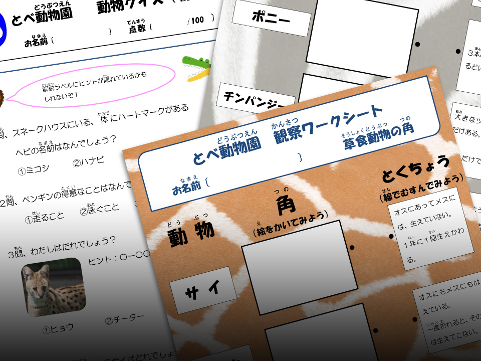 動物観察ワークシート・動物クイズシート