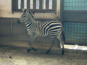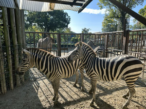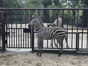 2025年10月28日に秋吉台自然動物公園サファリランドから、グラントシマウマのミナツ♀(1歳)がやってきました。搬入時のミナツ♀はとても落ち着いており、獣舎内にスムーズに収容できました。その後、サブパドックで同居予定のシマウマと柵ごしのお見舞いを行なった後、11月10日からサブパドックでヒナタ♀とウララ♀との同居練習を始めました。まだ30分くらいの短時間しかおこなっていませんが、様子を見ながら同居時間を長くしていき、今後は安全に考慮しながらパドックでの同居練習をする予定です。一般公開は未定なので、もう少しお待ちいただければ幸いです。