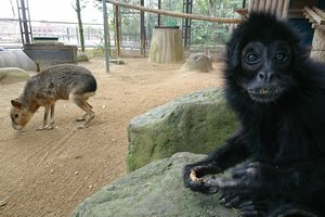 私が飼育員になって最初に担当したのがクロでした。その当時、クモザル舎にはクロを含む6頭のクモザルの他に、マーラ、オオホウカンチョウ、コンゴウインコが飼育されており、4種の動物たちが同じ空間で生活していました。2回目に担当になった時には、クロと弟のサル吉の2頭がマーラ、オオホウカンチョウと一緒に生活していました。そして、昨年4月に3回目の担当になりました。クモザル舎の住人はクロ1頭だけでしたが、人工哺育で育ち人間が大好きだったクロ。動物園で働くスタッフや、来園者の皆さんに「クロちゃん!」と名前を呼ばれると嬉しそうにあいさつしていた姿が思い出されます。今までクロを応援してくださった皆様、本当にありがとうございました!